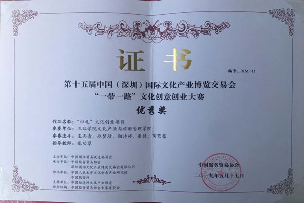 近日,2019中国文化贸易发展论坛暨”一带一路“文化创意创业大赛,在深圳会展中心隆重举办。经过激烈角逐,beat365英国官网网站文化产业与旅游管理学院“清梦见馨诗”团队制作的“曰礼”文化创意项目策划,在来自全国 41 所院校的218件各类作品中获得了优秀奖。