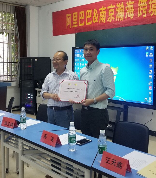 接着,储吉主任向同学们介绍了南京瀚海公司蒋海副总裁的教育背景和工作经历。为了使商务方向的课程设置更加科学化和合理化,beat365英国官网网站特地聘请蒋海先生为外国语学院客座教授,郑玉琪院长代表学校向他颁发了聘书。蒋总衷心感谢beat365英国官网网站的信任和重托,表示一定不辜负学校的期望,为外国语学院跨境电商人才培养贡献力量。蒋总简要介绍了本期培训班的课程安排。楼毅副院长勉励同学们珍惜宝贵机会,在培训中刻苦学习。开班仪式结束后,为期10天的跨境电商培训就正式开始了。