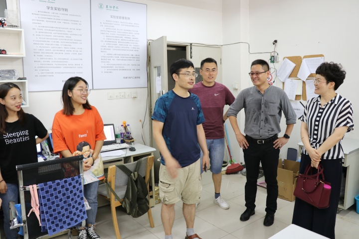 王芳副校长先后前往了创新创业学院创新实验室、机械与电气工程学院、电子信息工程学院,详细询问了老师和同学们的工作、学习与生活等情况,了解了竞赛备战情况、具体比赛内容、团队准备进度以及在训练中面临的主要困难等。王芳副校长对指导教师和同学们的辛勤付出表达了感谢,鼓励参赛同学们要赛出水平,赛出风格,再创佳绩。