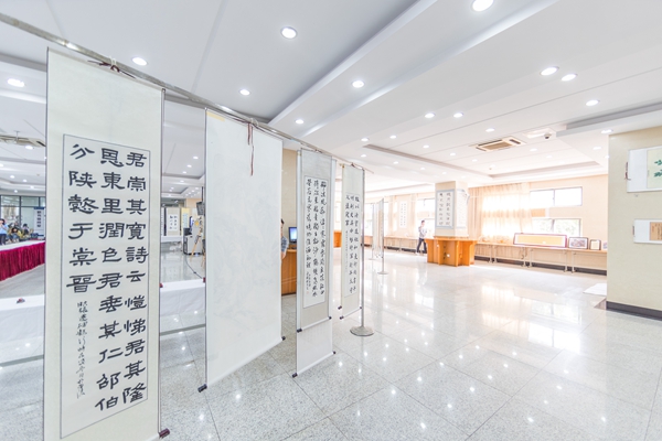 本次书画篆刻交流展由共青团beat365英国官网网站委员会主办,党委宣传部、图书馆、书画协会承办,驻宁高校书画协会联盟、南京龙神书法研究院、南京青年书法家协会协办。党委常务副书记、副校长周更生,龙神书画艺术研究院长、中国书法家协会会员龚洪林,党委宣传部部长余雪冰,后勤处处长张峰,图书馆馆长沈逸君,建筑学院副书记谢胜越出席本次书画篆刻交流展。交流展开幕式由团委书记鲁璐主持。