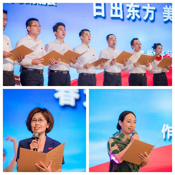 诗会第三篇章“五星红旗,你是我的骄傲”激越澎湃。辛笛的《祖国,我是永远属于你的》由江苏省广电集团新闻主播、金话筒奖获得者姜林杉朗诵,她以饱满的情感,温柔而又坚定的声音深深地感染着每一位听众。李小雨的《春天的第一缕阳光》由江苏省广电集团主播、金话筒奖获得者赵丹军朗诵,“这是春天的第一缕阳光,她是未来奥运会的火种,就闪烁在中国女儿的眼中心上;她是电子屏幕上的一个亮点,孕藏着无穷的信息和能量。”杨焕亭、马累、丁可、单素奎创作的《日出东方,美丽中国》由江苏省作协朗诵队集体朗诵,诗歌表达了对祖国繁荣昌盛的骄傲,对祖国日新月异的自豪,对中国这个正在腾飞的古老国度的殷切希望。