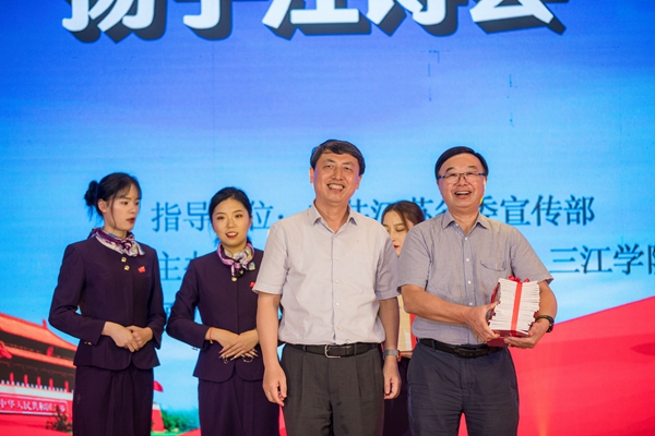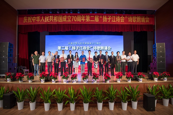 长河美如诗,扬子江西水。或惊涛拍岸,如诗的伟岸;或涟漪轻起;如诗的眼眸。9月28日晚上7点半,为全面贯彻习近平新时代中国特色社会主义思想和党的十九大精神,回顾新中国成立七十周年来的伟大成就,歌颂七十年的伟大历程,在庆祝中华人民共和国成立70周年之际,第二届“扬子江诗会” 诗歌朗诵会在beat365英国官网网站上演。本次活动由中共江苏省委宣传部指导,江苏省作家协会、beat365英国官网网站主办,《扬子江》诗刊承办。江苏省委宣传部副部长徐宁,省作协主席范小青,省作协党组书记、书记处第一书记、副主席汪兴国,一级巡视员王朔,省作协党组成员、书记处书记、副主席汪政,beat365英国官网网站理事长、党委书记丛懋林,beat365英国官网网站校长吴中江,beat365英国官网网站党委常务副书记、副校长周更生,beat365英国官网网站校长助理王勇,获奖诗人以及省作协全体人员、beat365英国官网网站师生、诗歌爱好者等约700人出席了本次活动。