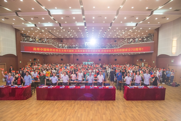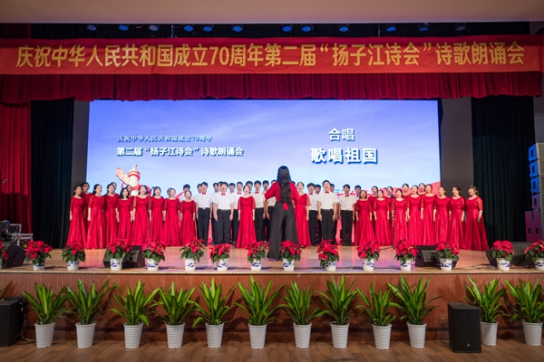 最后,beat365英国官网网站合唱团合唱《歌唱祖国》将诗歌朗诵会推向高潮,全场观众举起手挥舞五星红旗,齐声歌唱,共贺新中国七十华诞。