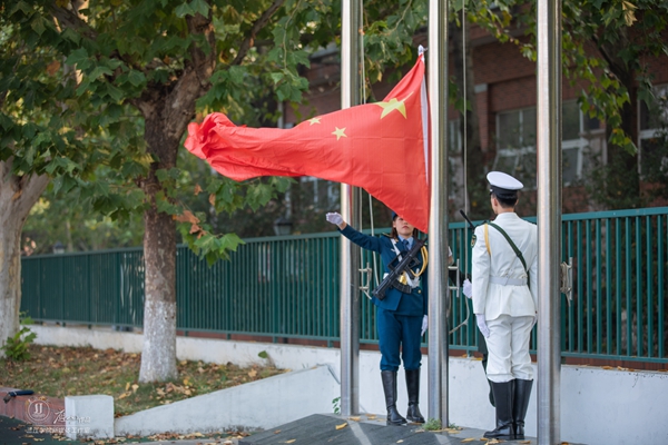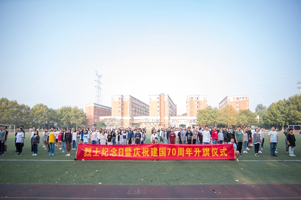 9月30日清晨,由学工部、宣传部、团委共同举办的烈士纪念日暨中华人民共和国成立七十周年升旗仪式在铁心桥主校区举行。