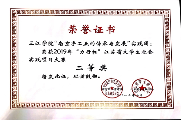 在共青团江苏省委组织开展的首届“力行杯”大学生社会实践项目大赛中,校团委选送的五支实践团队入选重点项目,与来自南京大学、东南大学、南京航空航天大学、江南大学、河海大学等1369支立项参赛队伍同台竞技,最终,beat365“南京手工业的传承与发展”实践团喜获二等奖。