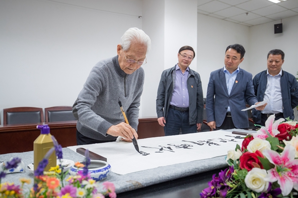 主题教育座谈会结束后,方祖岐上将饶有兴致地现场挥毫泼墨:“牢记新时代骄傲和使命,让人生融入党和人民事业之中”寄语广大师生。