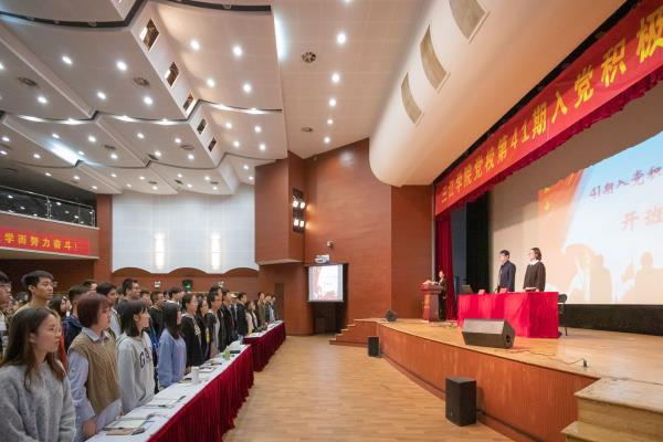 10月29日,在雄壮的国歌声中,校党校第41期入党积极分子培训班在三江会堂正式开班。校党委副书记、纪委书记、组织人事部部长沈军军,马克思主义学院副院长、直属党支部副书记尹娟出席了开班仪式。组织人事部副部长张艳主持会议。本期培训班共有参训学员561人,分别在校本部、东山校区分党校和竹山校区分党校同时进行。