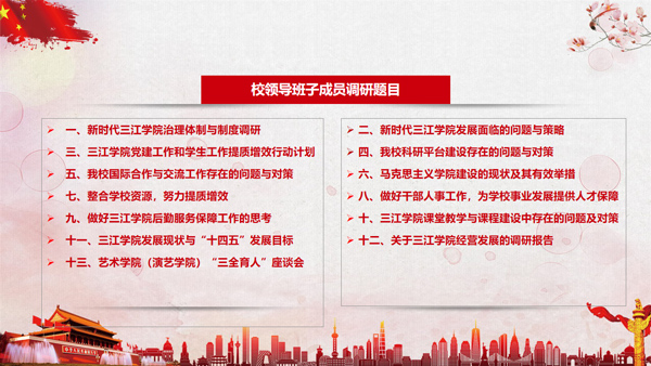 学校党委把主题教育作为推动学校高质量发展的重大机遇,坚持联系实际,以问题为导向,制定调查研究和检视问题有关工作的通知,学校领导班子成员已经确立13个专题展开调查研究,全校中层副职及以上干部结合岗位职责、工作目标和工作重点拟定调研题目,学校将通过座谈交流、个别访谈、书面征求、问卷调查等方式,广泛征求师生的意见建议,体民情、察民意、解民忧,力求以扎实的调研、检视和整改,推动学校事业改革发展各项任务落实落地。