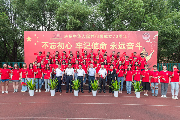爱国是最深沉、最持久的情感和力量。第二批主题教育全面启动之时,恰逢中华人民共和国成立70周年之际,学校将庆祝新中国成立70周年与“不忘初心、牢记使命”主题教育紧密结合,精心组织开展系列内涵丰富、形式多样、感染力强的庆祝活动,广泛激发师生爱国之情,坚定报国之志。