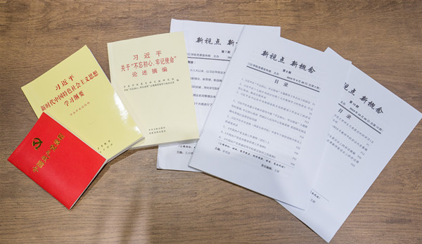 在个人通读规定学习内容的基础上,学校举办学习小组进行集中学习。集中学习坚持领导带头,全员覆盖,学校将全校各党总支(直属党支部)编为11个集中学习小组,集中学习小组设督导、组长、学习秘书和领读员。集中学习计划分为22个专题,内容涵盖了《中国共产党章程》《习近平关于“不忘初心、牢记使命”论述摘编》《习近平新时代中国特色社会主义思想学习纲要》,同时学校还编印了3期《新视点、新概念》(包括数解理论名词和普通理论名词、党的最新法规条例、习近平关于教育的重要论述等)作为专题学习重要辅助学习内容。马克思主义学院专职教师和“双师型”辅导员组成集中学习领读员,集中学习前,领读员们先学一步,学深一层,并组织集中备课,有效提升了领读领学效果。