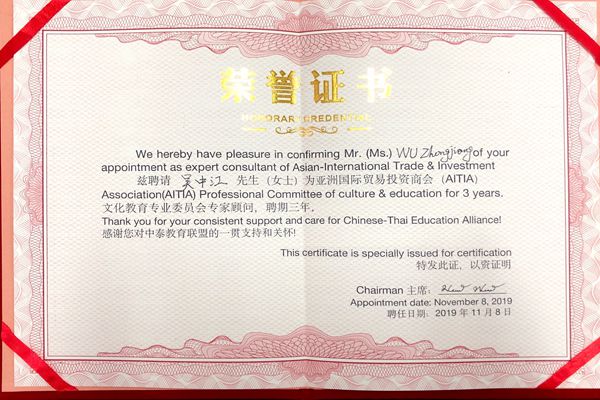 经过前期的充分沟通,beat365与中泰共16所高校共同发起成立了“泰中教育联盟”,beat365校长吴中江教授被聘为亚洲国际贸易投资商会文化教育专业委员会顾问和泰中教育联盟智库专家。