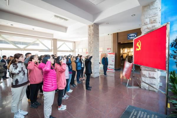 11月23日,党员同志们到达茅山新四军纪念馆。在纪念馆大厅,面对鲜红的党旗,第一机关党总支书记李云涛同志带领全体党员高举右拳,重温入党誓词。鲜红的党旗擎起一颗颗赤诚的心,庄严的誓词凝聚起不忘初心的信念与力量。
