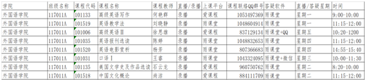 各二级教学单位给学生公布的线上课表