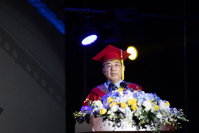 吴校长首先代表全校师生员工向圆满毕业的2020届毕业生们致以最热烈的祝贺和最美好的祝福!同时,也请所有的毕业生和他一起向为毕业生的成长付出辛劳、默默奉献的师长、亲人和朋友们,致以崇高的敬意和衷心的感谢!他还特别对自新冠肺炎疫情发生以来,同学和家长们对学校疫情防控工作等各项工作的理解和支持表达了诚挚的感谢!