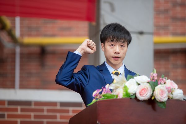 理事长、党委书记丛懋林宣布运动会开幕。裁判员代表蔡舒和运动员代表李思佳分别宣誓。