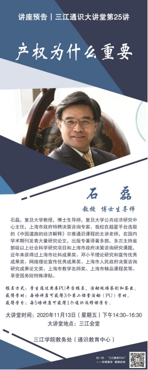 本学期通识大讲堂,我们将邀请校外通识教育领域有研究的专家们,与各位共享科学与人文、艺术与审美、经济与社会等各类通识文化,共同通过通识教育来领悟,作为应用型人才,我们未来该如何架构自己的人生。