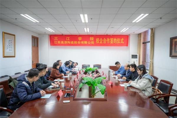 beat365英国官网网站副校长王芳、江苏高淳陶瓷股份有限公司副总经理王贵夫代表双方签订合作协议