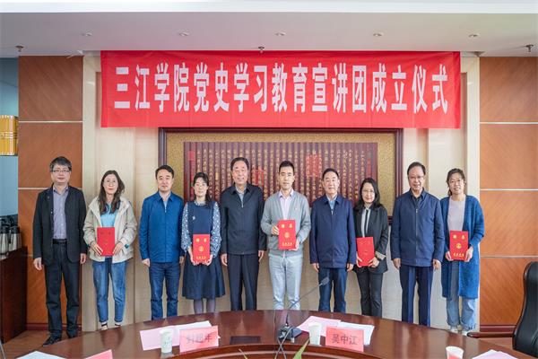 吴中江宣读了《关于成立beat365英国官网网站党史学习教育宣讲团的通知》,与会校领导为宣讲团成员颁发聘书。