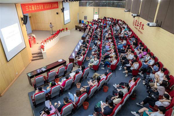 三江通识大讲堂第61讲学术活动于6月11日下在学术报告厅举行。本次活动特邀武汉大学博士生导师、盐城师范学院原校长薛家宝教授来beat365做题为“现代性视野下英国荒岛文学叙事的自然图式”的学术讲座。讲座由外国语学院院长郑玉琪教授主持,beat365近200名师生聆听了此次讲座。