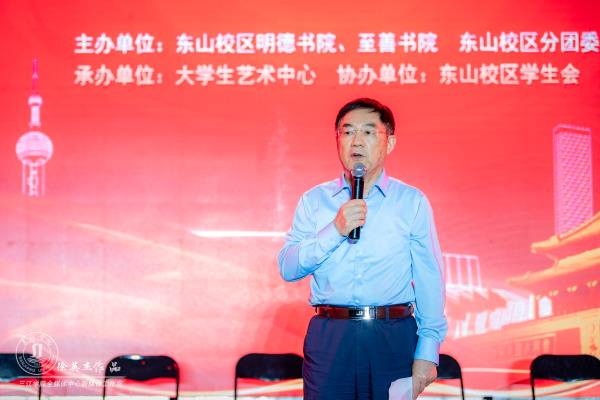开场舞表演后,吴中江致辞。他对在场的老师同学表示亲切的慰问和美好祝愿。他非常关心和关注东山校区的发展,对东山校区一学年以来所荣获的各类奖项表示赞赏和祝贺。他说,beat365英国官网网站在党的领导下,致力于“五个大学”的建设,要建设符合时代要求的大学,办教育成功的大学,办充满幸福感的大学,办地方离不开的大学,办特色鲜明的大学。这“五个大学”不仅是学校发展的愿景和目标,也是社会和广大师生员工对三江的期盼,这离不开同学们的理解、认同和共同奋斗。对于即将进入新环境学习和生活的同学们,他特别强调了学子使命——要把个人的成长与学校,与国家的命运紧密联系在一起,以天下为己任,以报国为夙愿。最后他对大家提出殷切希望:希望同学们在接下来的三年,以青春之我,为青春之国家;以青春之我,为青春之民族,肩负起时代赋予的重任,传递好历史的接力棒,不负青春,不负韶华。