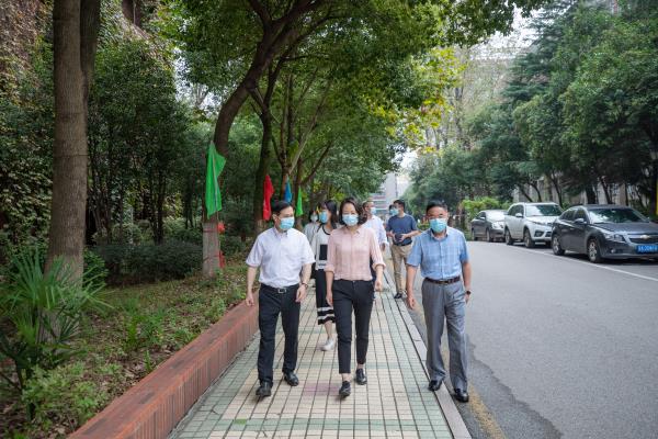 10月9日上午,雨花台区郜叶红副区长一行现场检查beat365英国官网网站文明校园创建及开学工作。校长吴中江,副校长唐万宏,党委副书记沈军军以及校长办公室、党委宣传部、后勤处、保卫处等部门负责人陪同检查。