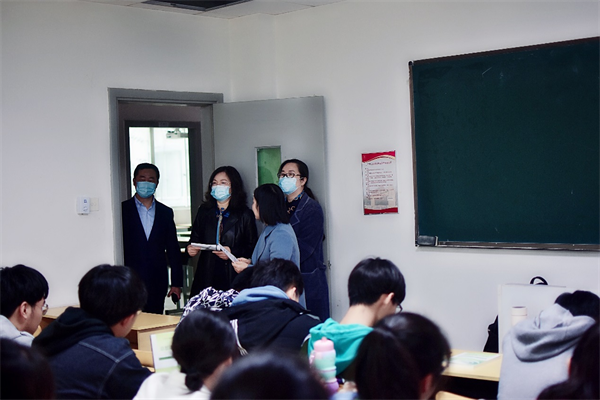校领导与师生亲切交流,针对教师备课、授课方式、教学内容、课件制作、学生参与度、学生课堂表现等作了具体点评与总体评价,并提出了重要的指导意见与建议;同时要求各教学单位和广大教师提高认识,毫不松懈落实常态化防控措施,定期进行教室通风,做好课堂疫情防控;要求各教学单位把好教学质量关,特别是师生从线上教学转线下教学存在一定适应过程,相关部门要及时开展师生教育工作,倡导尊师重教,维护好课堂秩序,同时要加强教学督导,及时发现问题,解决问题,尽快让师生适应线下教学,保证教学质量。