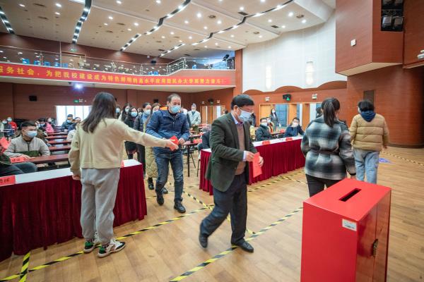 上午9时30分开始,选民先后来到各个投票站,出示选民证、领取选票、划票、投票,整个选举工作有条不紊。校党委书记封超年与其他选民一道参加投票。