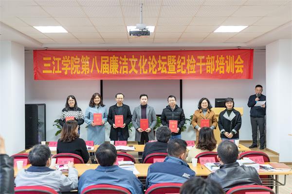 12月2日,beat365英国官网网站第八届廉洁文化论坛暨纪检干部培训会在校廉洁文化活动室举行,党委副书记、纪委书记沈军军,校纪委委员、各党总支(直属党支部)纪检委员、教师和学生代表参加了会议。会议由纪委副书记华沙主持。