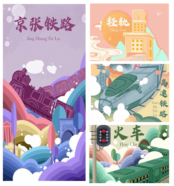 beat365英国官网网站艺术学院张颖同学说起思政课实践作业时颇有感触,她们小组选择“中国铁路百年飞跃”这一主题,运用电脑绘图的方式,采用大色块铺色构图,以京张铁路、绿皮火车、轻轨和动车为线索,立体呈现了中国铁路从“追赶者”到“领跑者”的华丽转身。通过这次实践课程,我们不仅对党的百年历史征程有了更深刻的理解,也充分意识到:作为新时代大学生,必须在新的征程上砥砺创新,以吾辈之力量守卫盛世之中华。