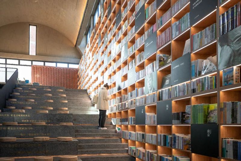 汤山矿坑书店扎根于荒置的矿坑,依附于老旧的砖窑。植被从破碎的石缝中长出,代表着自然、历史与工业的结合,是一件化腐朽为神奇的艺术品。这里最适合品一口咖啡,阅读一本书籍,眺望一下远处的风景。