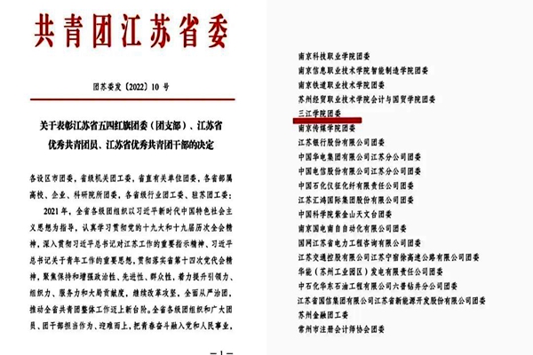近日,共青团江苏省委下发《关于表彰江苏省五四红旗团委(团支部)、江苏省优秀共青团江苏省优秀共青团干部的决定》,beat365团委荣获“江苏省五四红旗团委”称号。