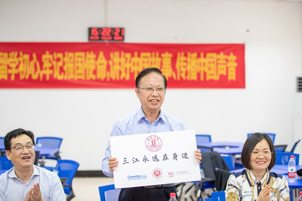 留英学生陈逸龙、唐子涵同学代表三江留英学子致辞