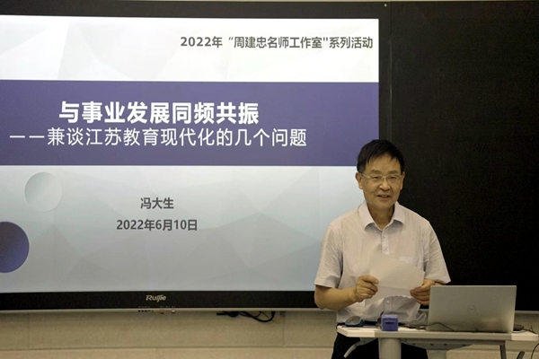6月10日,“周建忠名师工作室”特邀省教育厅二级巡视员冯大生来校作题为“与事业发展同频共振——兼谈江苏教育现代化的几个问题”的报告。