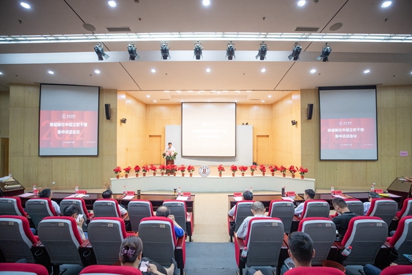 6月17日,学校在学术报告厅召开新任中层正职干部集中谈话会。全体校领导,全体新任命(聘任)中层正职干部,全体党委委员、纪委委员、教代会执委会委员,各级人大代表、政协委员,各民主党派人士代表出席。校党委书记封超年讲话,校长吴中江主持会议。