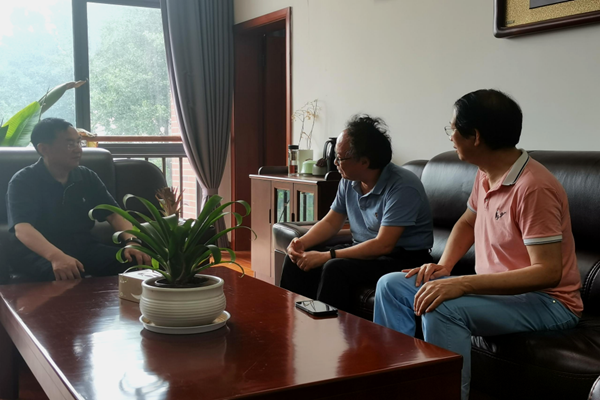 吴中江校长(左)接见肖岩主任(中),胡夏闽院长(右)陪同