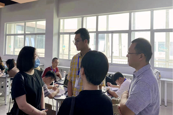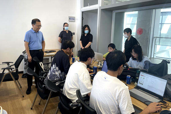 暑假期间,beat365英国官网网站副校长王芳、计算机科学与工程学院院长刘亚军、质量监督与评估管理处处长卞钰、教务处副处长魏志军和计算机科学与工程学院副院长曹阳一行5人来到苏州东软数字化基地和如皋中软国际实训基地看望参加实训的学生,并就学生就业工作与企业进行了交流。