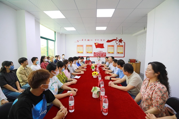 9月9日,金秋送爽,硕果飘香,在中秋佳节即将到来之际,文学与新闻传播学院院长周建忠教授带领全体学院领导班子成员及教师代表前往东山校区看望2022级文新院新生,举办了师生座谈会并向文新全体新生赠送月饼。东山校区管委会主任郁政宏、副主任武寿春、刘毅及新生辅导员陪同并参与了本次活动。