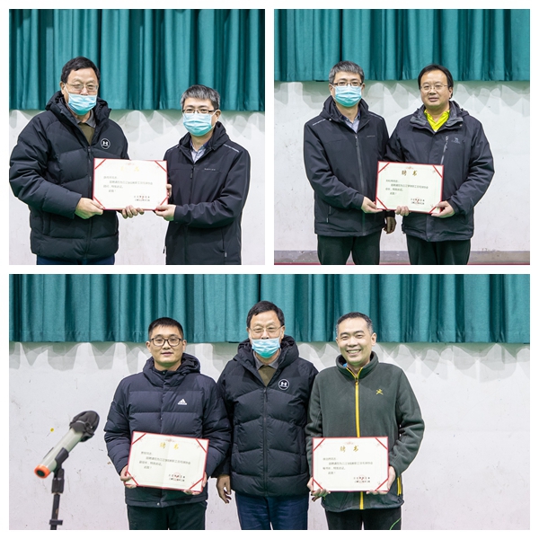 肖苏宣读了相关文件。沈军军为教职工羽毛球协会薛雨平顾问、刘松伟会长颁发了聘书;薛雨平为贾军副会长、徐治然秘书长颁发了聘书;会长刘松伟代表协会向校工会、体育部致以诚挚谢意。