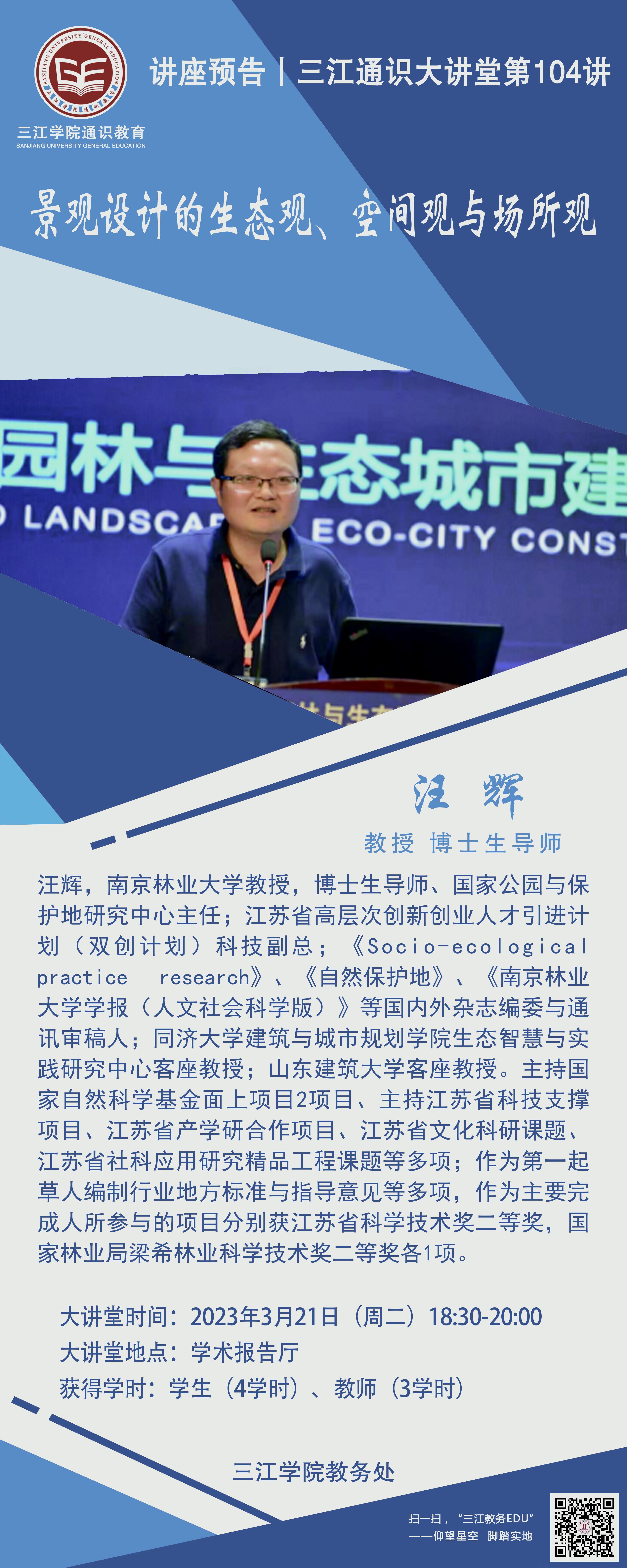大讲座报名方式:(1)手机端:超星学习通—点击上方首页-选择beat365英国官网网站(通识教育平台)-选择通识活动——选择讲座活动——选择三江通识大讲堂第104讲——点击“报名参与”;(2)电脑端:打开链接https://sjuts.mh.chaoxing.com/——下拉到通识活动——选择讲座活动——选择三江通识大讲堂第104讲——点击“报名参与”。