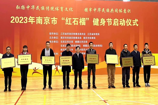 4月6日,由江苏省民宗委、江苏省体育局指导,南京市民宗局、南京市体育局主办的2023南京市红石榴“健身节”暨南京市少数民族传统体育项目基地授牌仪式在南京理工大学拉开帷幕。