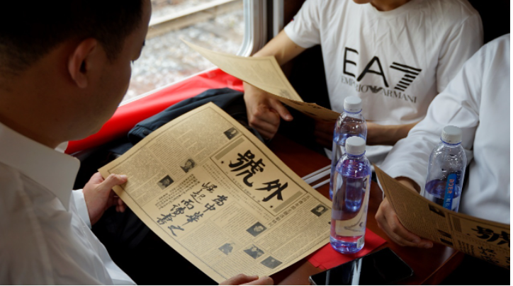 “今天又是五四青年节,伟大的五四精神需要得到继承和发扬,我们提前策划、发起线上+线下的主题活动,就是希望用吸引年轻人参与的方式,以一场沉浸式体验穿越百年传薪火。”共青团梅山街道工委相关负责人告诉记者,当天的活动联合了梅钢公司团委、beat365英国官网网站高职院分团委、上怡新村社区团支部、江苏省金陵监狱团委五家团组织共同参与。线上,通过开展忆峥嵘岁月、传五四薪火两个专题的有奖征集,汇集来一批有关百年前“新青年”们和新时代新青年楷模的先进事迹图文资料。这些资料在当天被制作成号外在列车内传阅,既营造浓烈的年代感,也方便广大青年团员们学习。
