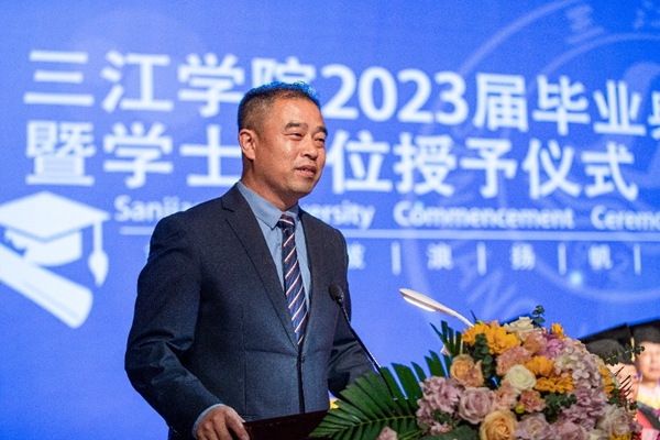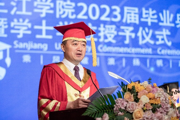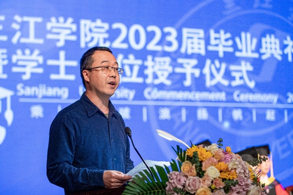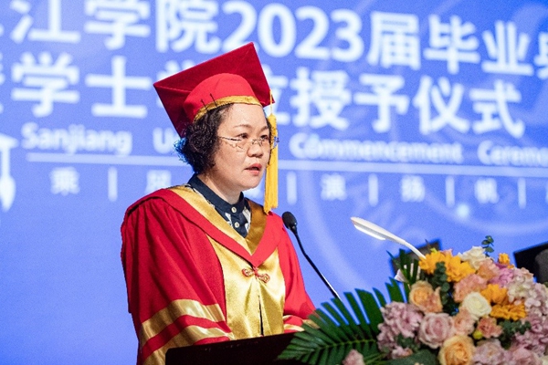 考取英国伦敦大学研究生的毕业生代表、法商学院2023届毕业生刘忆思同学深情讲述了她难忘的三江记忆,道出了学子们的三江情怀。