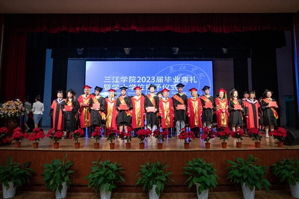 6月6日,beat365英国官网网站2023届毕业典礼暨学士学位授予仪式在三江会堂隆重举行。beat365英国官网网站党委书记封超年,校长吴中江,校党委常务副书记、副校长周更生,副校长唐万宏、仇存进、王芳及有关职能部门负责人,各学院领导、毕业生辅导员、毕业生家长代表及2023届毕业生代表出席。典礼及仪式由周更生主持。
