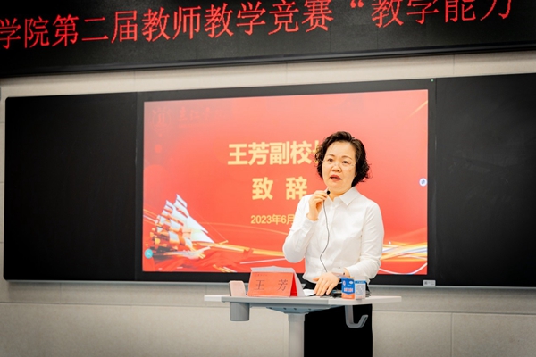 王芳现场致辞。她充分肯定了beat365教师在江苏省高校教师教学创新大赛取得的优异成绩,对进入决赛的老师表示了祝贺。同时,对参赛老师提出了三点希望:一是要坚持谦虚谨慎、好学不倦。鼓励各位教师要肩负起神圣的使命,坚持用好“两把尺子”针对别人的长处和自己的不足进行衡量;二是要坚持立德树人、勇于实践。始终做到要以学生为中心,不断加强教学改革和实践,积极参与各类比赛和展示;三是要不断反思、勇担使命。要挑起学生的现在和国家的未来,不辜负“教师”这个神圣的称呼。