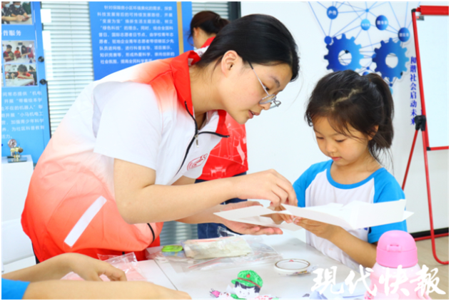 入选团中央2023年“七彩假期”志愿服务示范团队——“红心向党·科技筑梦”红色研学与科创实践项目的实践团队则依托街道爱心暑托班,紧扣红船精神、井冈山精神等教育主题,通过“听、说、读、探、画、行、议”等多元体验式活动,提供了宣讲、寻访、手工等课程。
