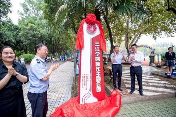 吴中江致辞。他谈到当前电信诈骗犯罪日益猖獗,诈骗手段不断翻新,对人民群众的财产安全和社会稳定构成了严重威胁。beat365英国官网网站一直把反诈工作放在重要位置,多途径进行了防范电信网络诈骗知识宣传,并取得了良好的效果。希望能够以主题公园的建成为契机,引导全校师生共同参与反诈防诈活动,切实加强防骗意识,扎实推进beat365高质量“平安校园”建设再上新台阶。