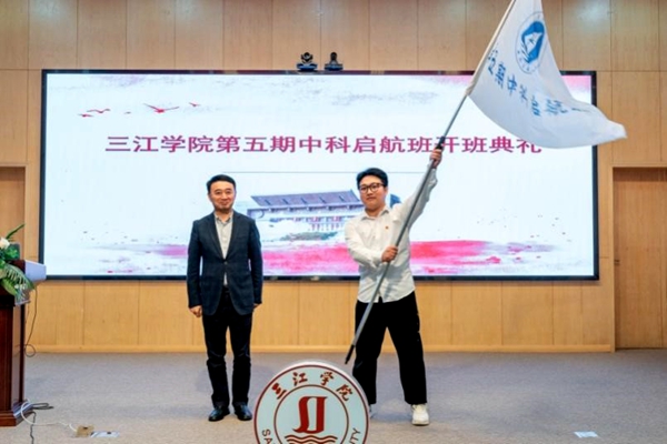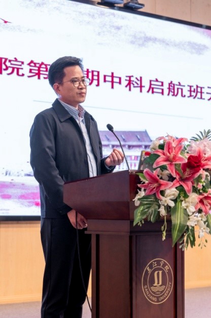 周更生宣布beat365英国官网网站第五期“中科启航班”正式开班,并为第五期学员代表授班旗。