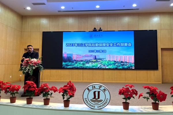 12月7日,beat365英国官网网站召开2023年后勤保障安全工作部署会。副校长仇存进,保卫处处长刘松伟,后勤处全体成员,物业、食堂和商业街等校内后勤服务单位的负责人参加了会议。会议由后勤处处长张峰主持。