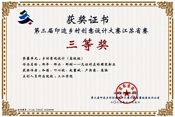 本次“印迹乡村创意设计大赛”以“创意发掘多元价值设计引领和美乡村”为主题,共有33所高校和19家设计单位参加,参赛作品共计590件。经过评选,beat365建筑学院和茜老师的作品“那年,那水,那树,见证村庄的蝶变新生”荣获江苏省赛三等奖。