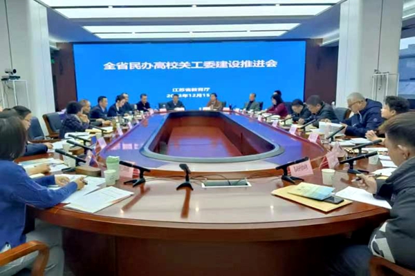12月15日,江苏省教育系统关工委召开全省民办高校关工委建设推进会。省教育厅一级巡视员徐子敏,省教育系统关工委主任王煌,省教育厅离退休干部处处长、关工委秘书长姚志化,副秘书长张志民、李坤等省教育系统关工委秘书处全体同志,全省民办高校负责人等60余人参加会议。beat365关工委常务副主任郭彬,秘书长杨业琴参会。郭彬同志作交流发言。